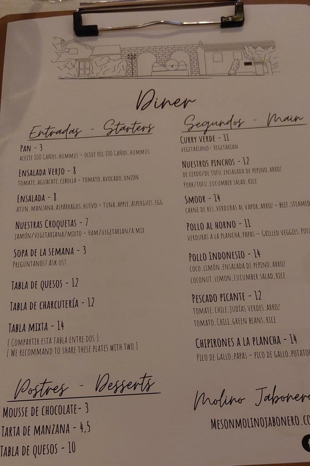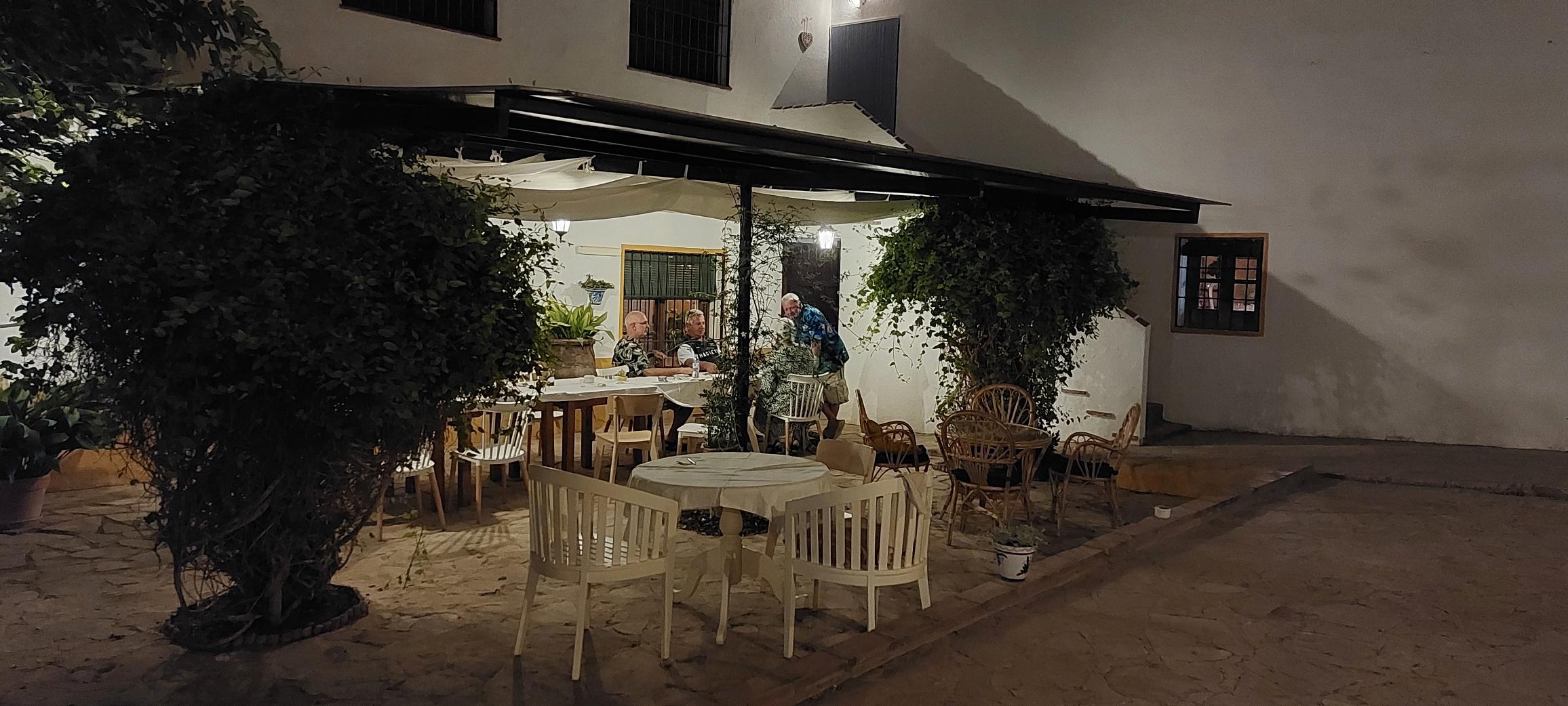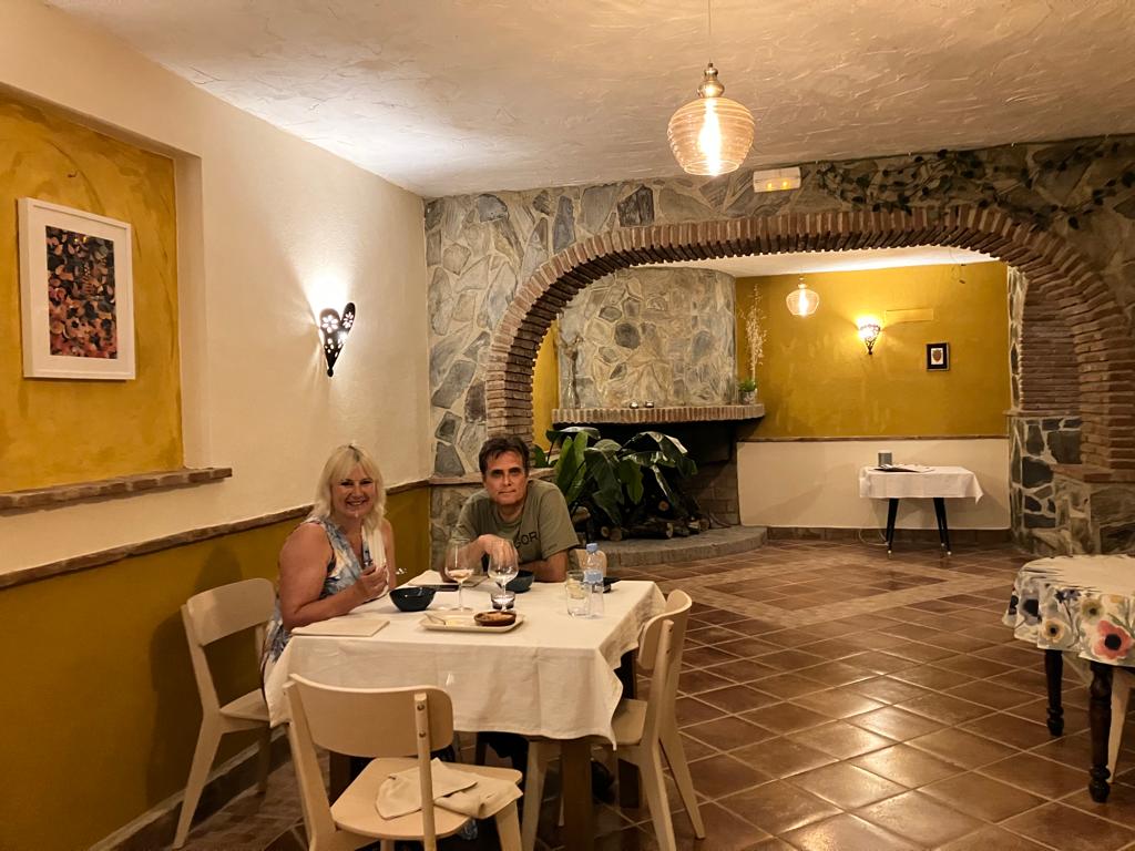 We hadden om 20.30 uur een reservering staan bij een nieuw restaurant in Villanueva del Trabuco. Helemaal nieuw is het niet want het was eerst af en toe in gebruik door German de eigenaar van Molino Jabonero. German verzorgd voor ons, onze vrienden en onze gasten regelmatig olijfolie tastings en rondleidingen soms ook incl lunch. Nu heeft hij zijn restaurant verpacht aan een jong Nederlands stel. Thomas en Fleur (en haar moeder) hadden het restaurant eerst gepimpt, de kleur rood is nu wit geworden en er zijn nieuwe stoeltjes en nieuwe tafellakens. Het ziet er gezellig uit nu. Vandaag is de opening en wij zijn erbij.