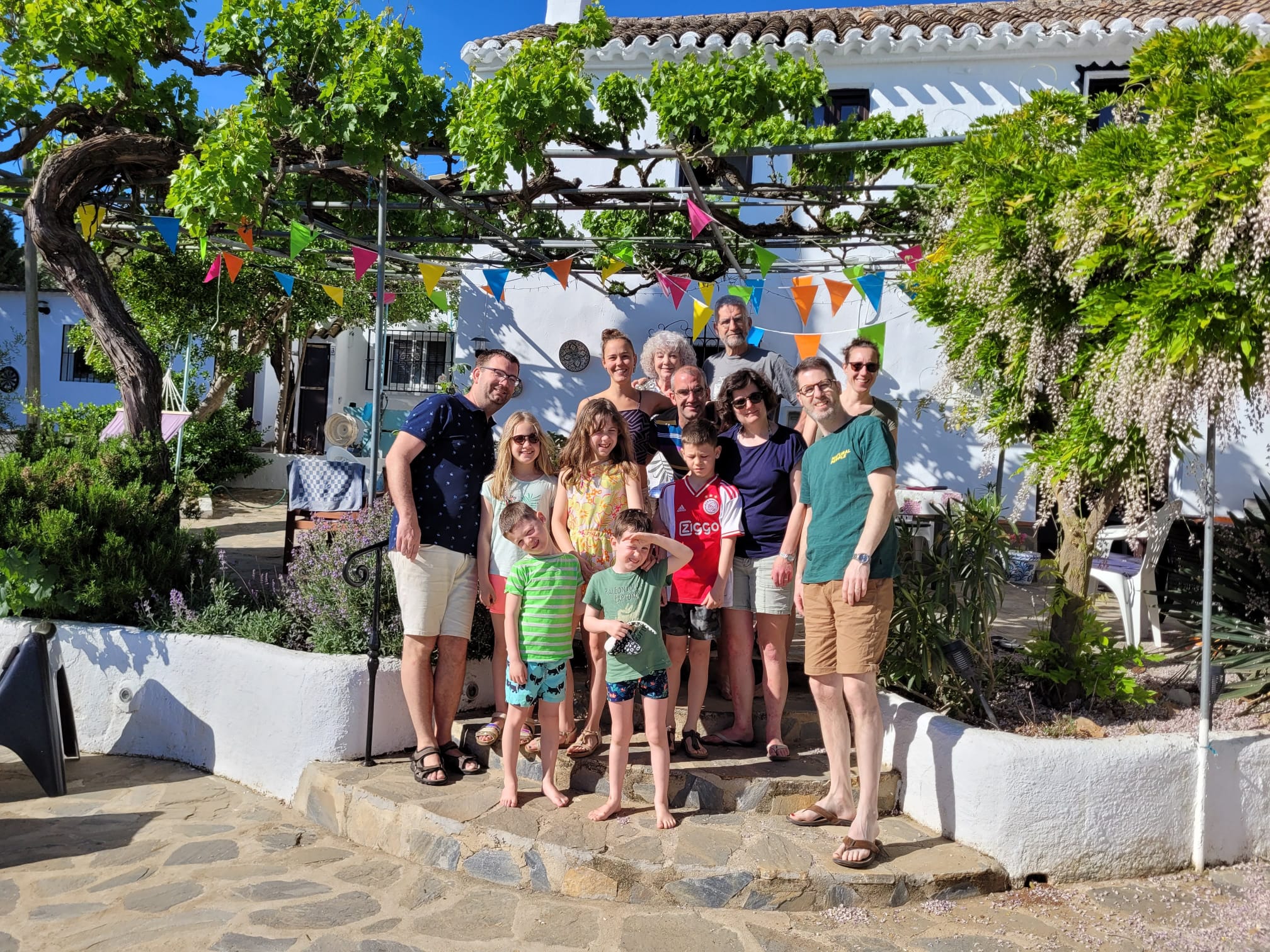 Omdat de gasten die we kregen in de meivakantie hun 45 jarig huwelijks feest kwamen vieren met kinderen en kleinkinderen had ik vlaggetjes opgehangen en een flesje cava klaar gezet, dus laat het feest maar beginnen.
