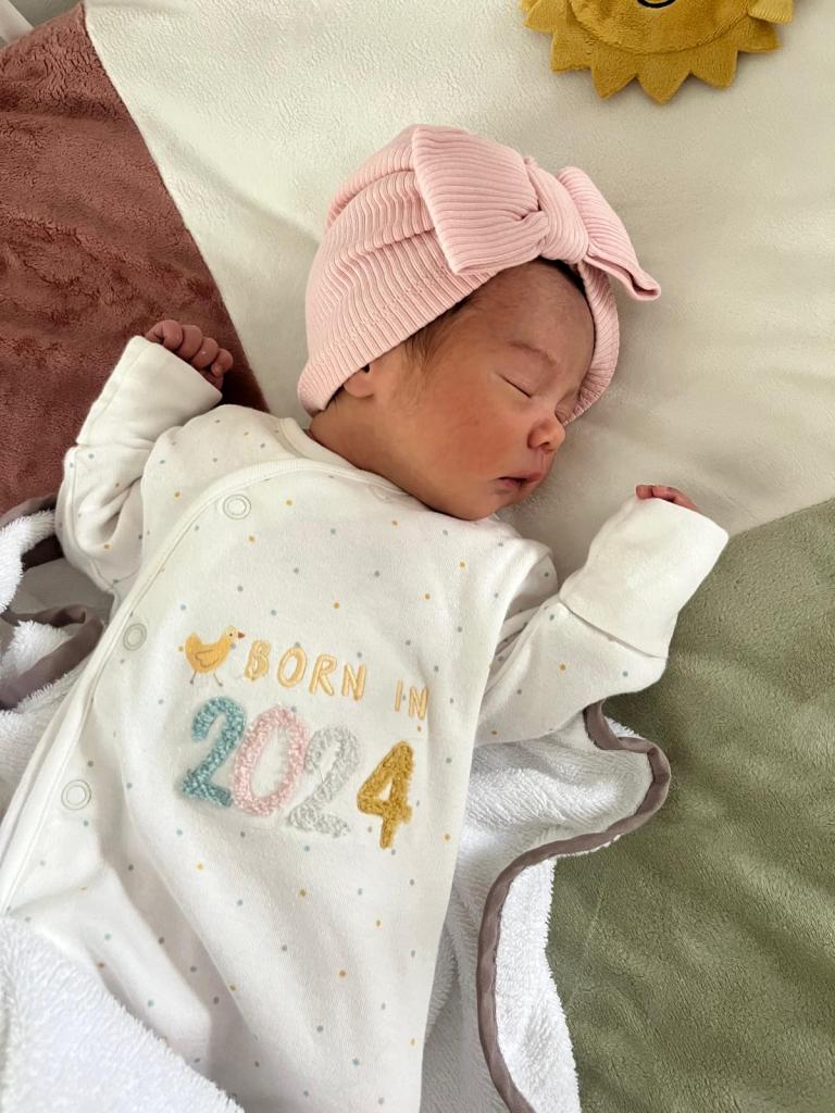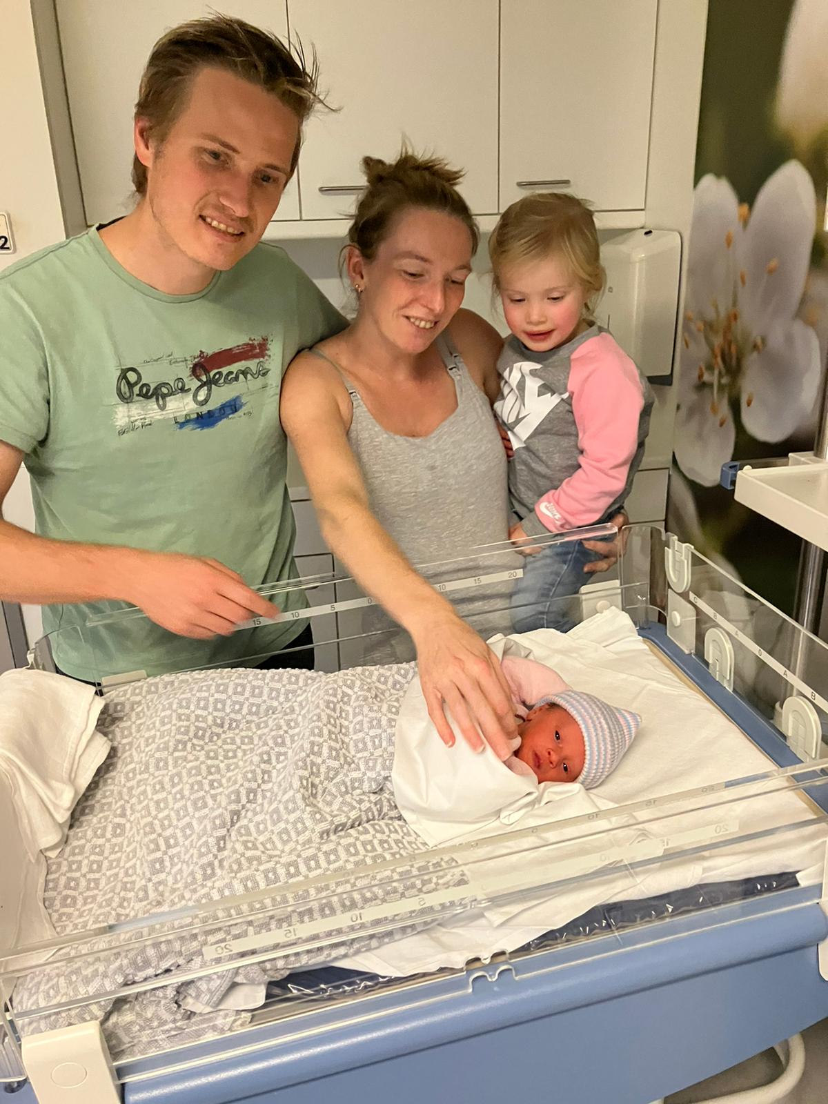 Weer een meisje en ze heet Riley, ook al zo’n mooie naam. Ze is een maand te vroeg geboren en is erg petit met haar 2025 gram. Ze is zo schattig en ze kijkt al zo wijs uit haar oogjes.