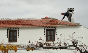 Vandaag kwamen Paul en Peter de Engelse bouwvakkers weer langs om de dakpannen te vervangen die stuk waren, hopelijk gaat het dak nu niet meer zo lekken als er een plens regen valt.