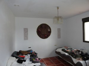 Zelf heb ik me bezig gehouden met het bovenkamertje waar een rode betonnen vloer in ligt, die kleur is zo fout en vies en aangezien we geen geld meer hebben om daar iets duurs op te leggen, er moet namelijk ook eerst nog een laagje beton gestort worden om de vloer weer recht te krijgen, hebben we besloten om hem alleen maar te verfraaien met een andere kleur betonverf, grijs/beige, het staat een stuk beter kan ik je vertellen, de andere twee boven kamers gaan we daarom daar ook mee doen. Vloerkleedje tzt erop en voorlopig is dat prima.