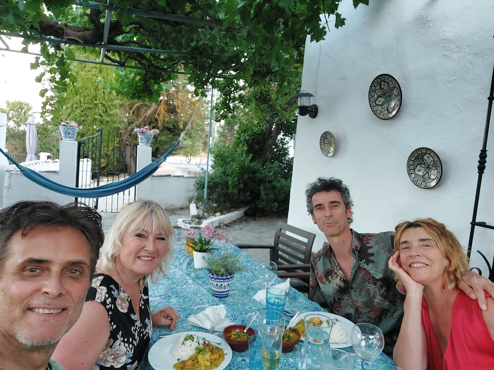 Gelukkig kennen we wat leuke mensen in de buurt waar we zo nu en dan mee afspreken om bij te kletsen. Dit keer gingen we met Rob en Ibolja, die we al 15 jaar kennen, uiteten bij het leuke buitentuintje La tasca in Villanueva del Algaidas. Dit is echt een verborgen pareltje midden in het dorpje verscholen achter een grote poort in een klein straatje, je moet het maar weten. We bestelden wat tapas en racions. Echter het is altijd lachen hier want als je denkt een tapa besteld te hebben krijg je soms een grote portie en als je een racion besteld hebt lijkt het soms maar de hoeveelheid van een tapa. Maakt allemaal niet uit, het gaat hier heerlijk ongedwongen. Als de rekening komt kun je alleen cash betalen en merk je dat je voor maar €20 pp incl drinken je helemaal tonnetje rond hebt kunnen eten.