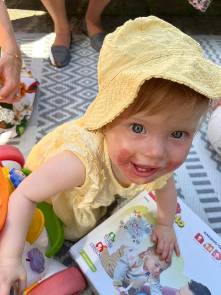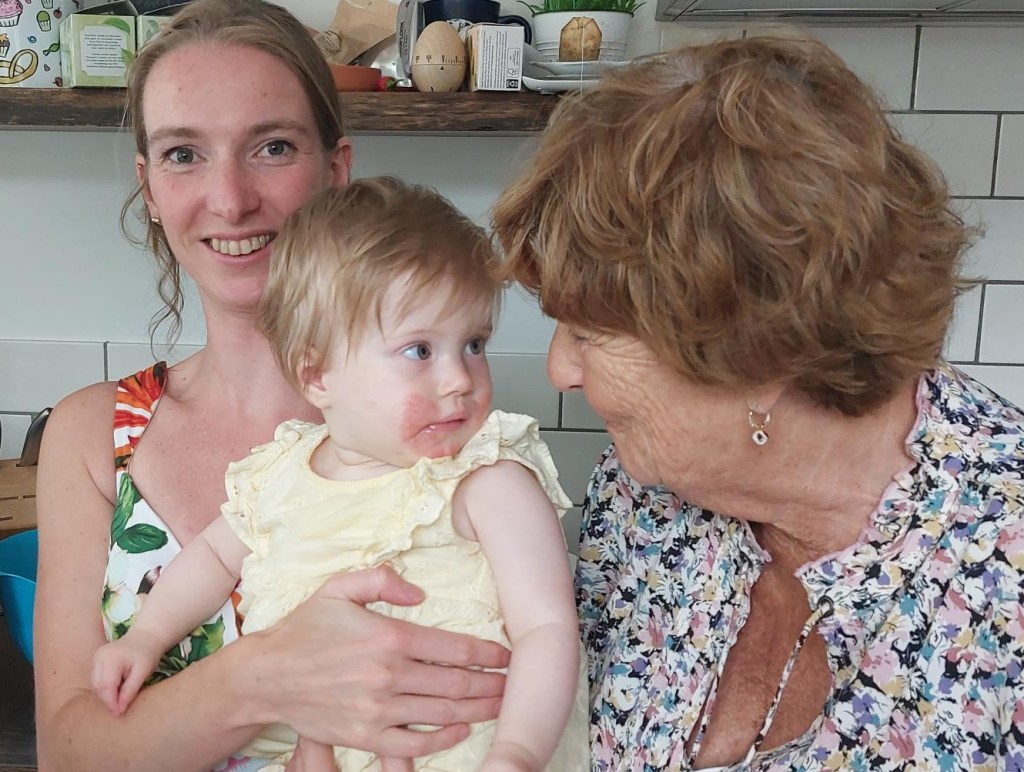 Het allerleukste van weer thuis komen is natuurlijk om je kinderen en je kleindochter weer te zien.