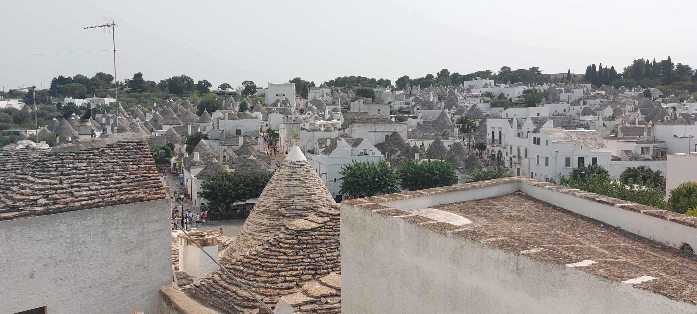 Het volgend dorpje waar we heen gingen lag 45 minuten rijden van Ostuni, we reden naar het hart van Puglia naar Alberobello en dat dorpje is misschien wel het meest door toeristen bezochte plekje van Puglia, het staat op de Werelderfgoedlijst van UNESCO. Het is nameliijk bekend om de trulli huisjes. De trullo is een rond gebouwd huisje, die vorm bleek tijdens het bouwen het stevigst te zijn, het is gebouwd van kalksteen zonder cement (dit zodat ze het snel weer konden afbreken als de belasting inspecteur langs kwam zodat ze niks hoefde te betalen) de daken zijn kegelvormig en binnen blijft het redelijk koel.
