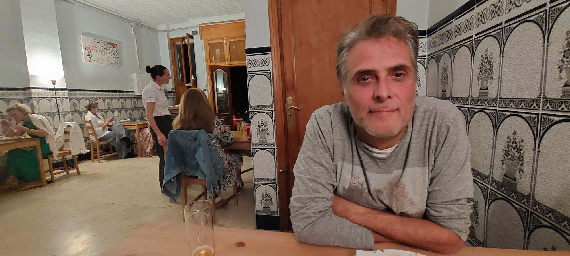 Tussen de middag hadden we onszelf getrakteerd op een menu del dia bij onze vertrouwde bar/restaurant Manolo. Voor €11 heb je een perfect menuutje inclusief wijn.
