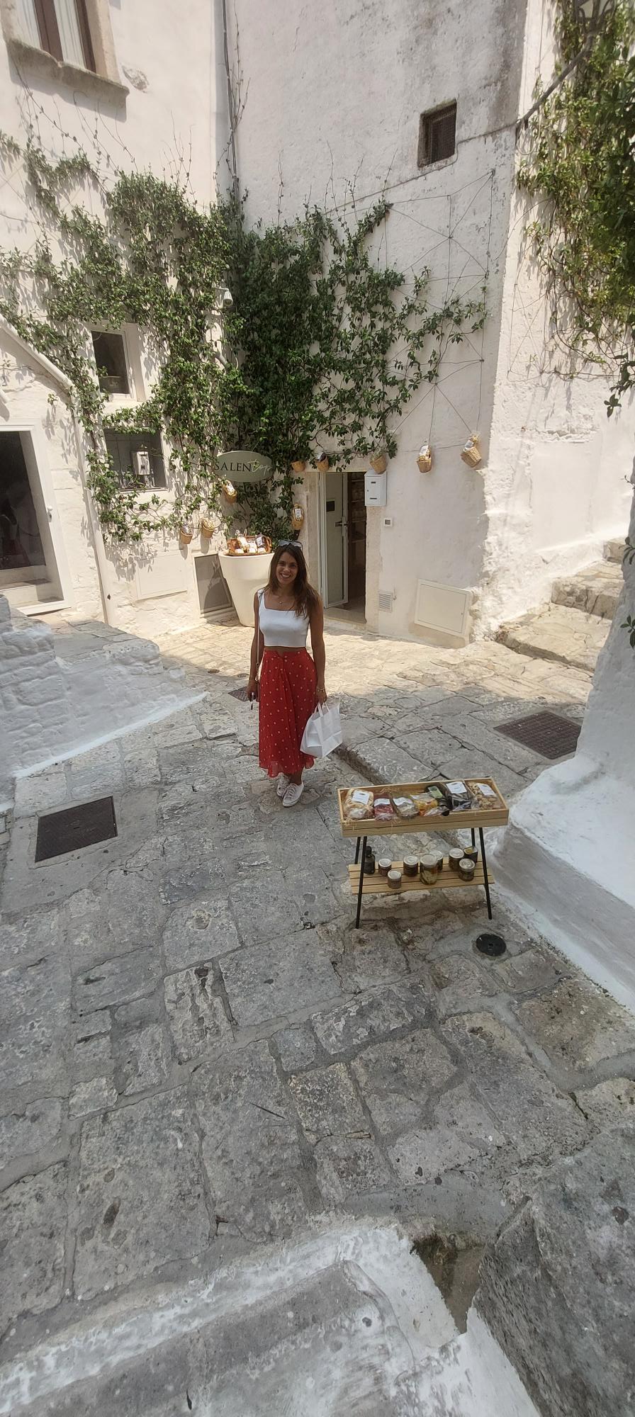We besloten om eerst naar het plaatsje Ostuni te rijden een wit dorpje gebouwd op een heuvel, zo’n half uurtje van de luchthaven, het landschap eromheen is vrij vlak dus het stadje valt snel op.
