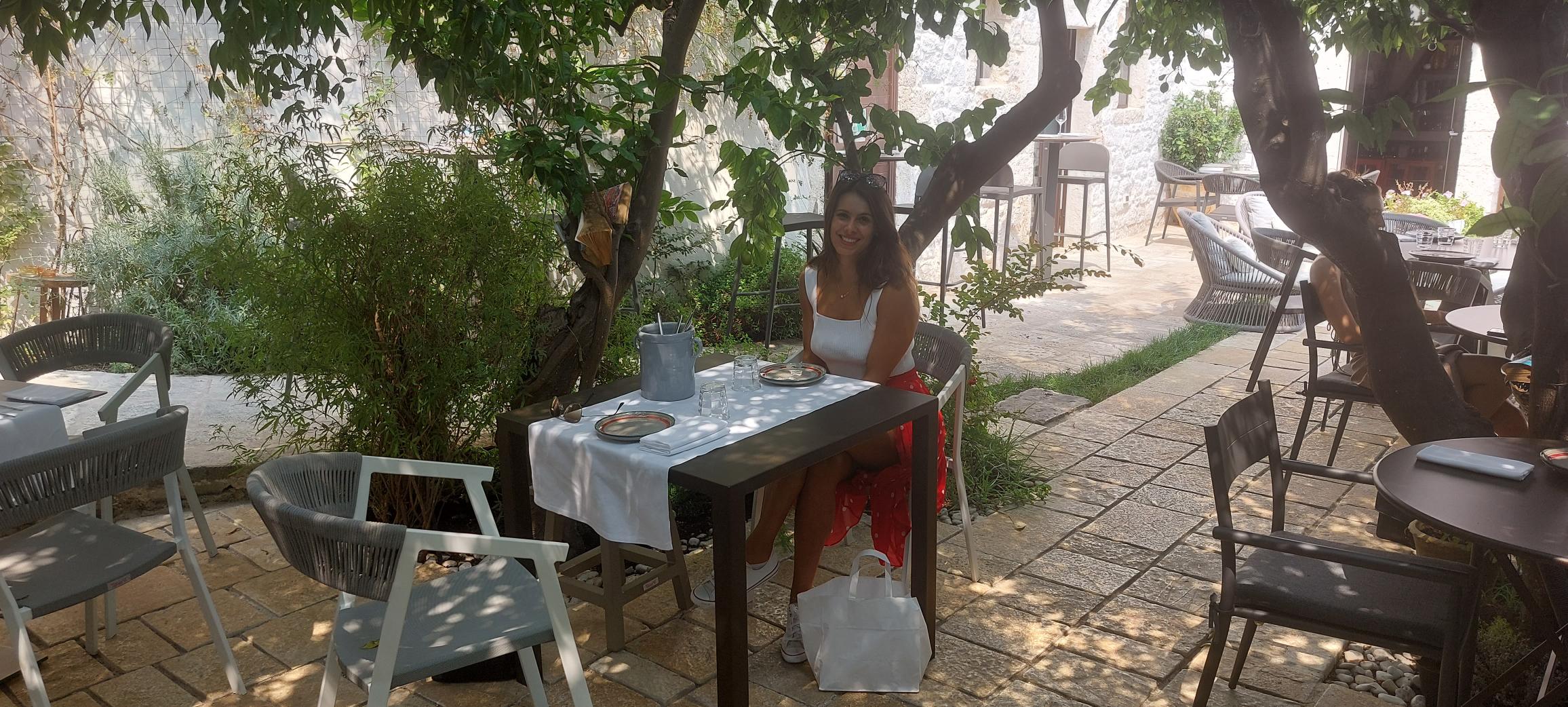 Het leukste plekje wat wij tegen kwamen was restaurant-lounge garden Coffee&More, je zit daar heerlijk beschut onder de citroenbomen op een binnen plaatsje buiten te eten, want pff die zon in combinatie met het wandelen zorgde ervoor dat mijn hoofd zo oranje was als de Aperol Spritz die we bestelde.