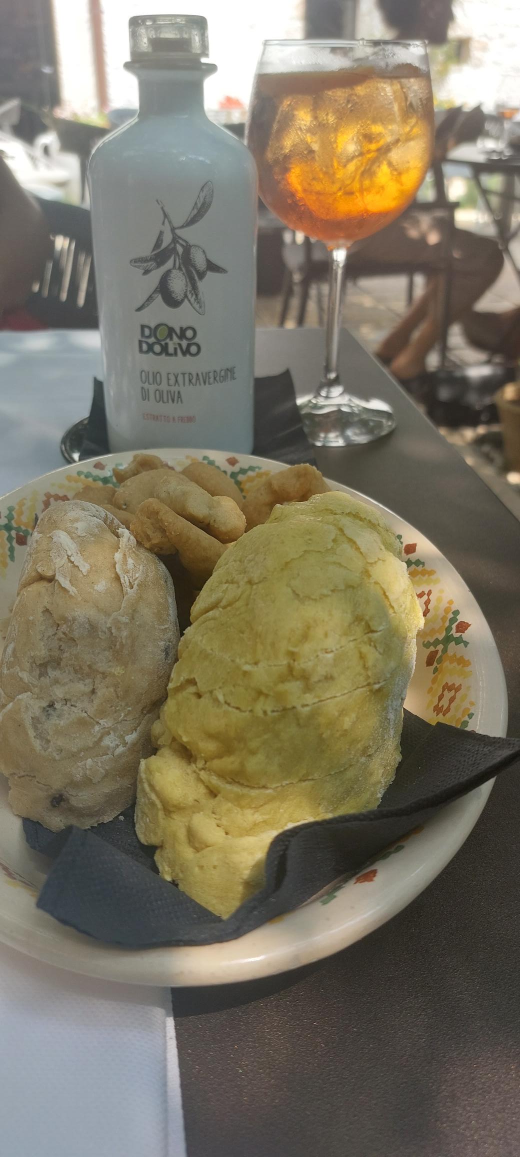 We kregen een mandje verschillende broodsoorten en de taralli snack, dit is typisch van deze streek en zie je overal. Taralli’s zijn hartige, krokante deegringetjes in verschillende smaken maar vaak met venkelzaadjes. Ze worden eerst gekookt in water en daarna gebakken in de oven.